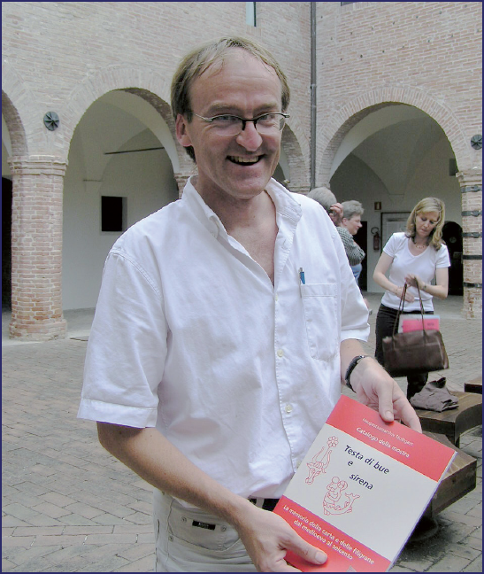The first exhibition which Timoty Leonardi organized together with Isabella Fiorentini was at the Biblioteca Nazionale di Torino with the title “Testa di bue e sirena. Cartiere e filigrane piemontesi: prospettive di ricerca” (30 April – 27 June 2009). This exhibition was accompanied by an additional catalogue edited by Timoty Leonardi25. 2011 followed the exhibition (6 May-10 July) in Vercelli at the Museo del Tesoro del Duomo, which was the working place of Timoty Leonardi.