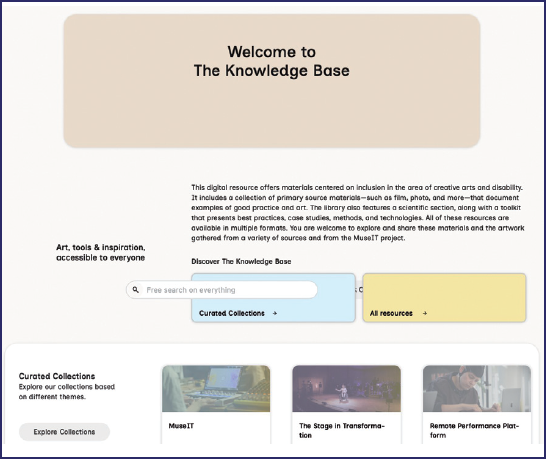 Figure 3. Snapshot of the new user interface to the Knowledge Base for Art and Inclusion, <https://knowledgebase.sharemusic.se/>