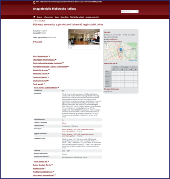 Figura 10. Il dettaglio di un fondo speciale pubblicato sull’Anagrafe delle Biblioteche Italiane