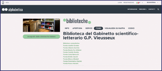 La ricerca sui Fondi registrati da Anagrafe è disponibile anche attraverso la il portale Alphabetica28, mediante il canale “Biblioteche”.